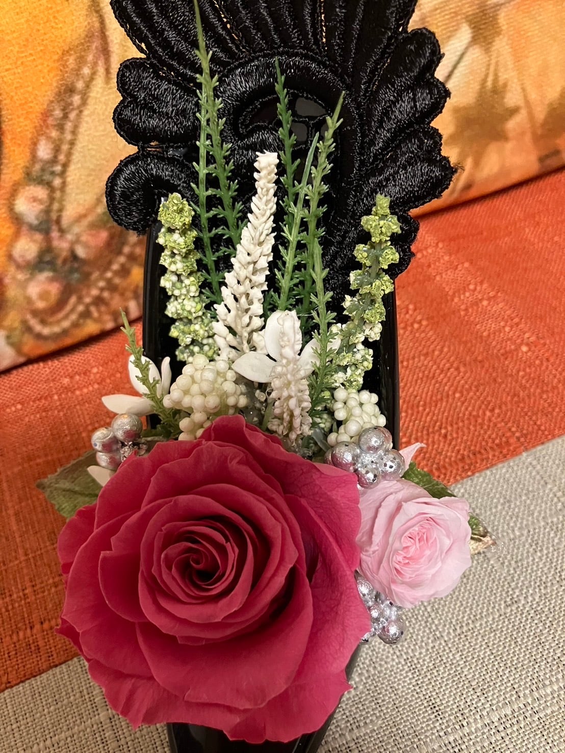 - 素材: プリザーブドフラワー(加工済みの生花)、ハイヒールベースは高品質な素材を使用。
